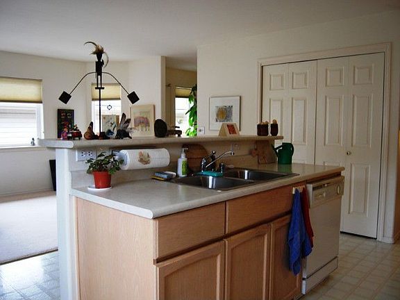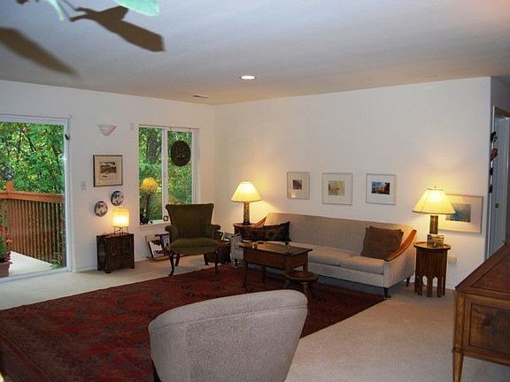 Large one level condo in Pacific Woods gated condo community. Stairs up to condo but then all on one level. Very bright, spacious floor plan with over 1700 sqft. Large master suite w/ his and her closets & full bath. Huge living room with fireplace and deck access which overlooks wooded green space. All appliances included. Minutes to all amenities yet absolutely peaceful and quiet. Interior stairs to attached garage. Strong association beautifully maintains units. Financially fit.