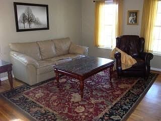 Beautiful 2-story home with rocking chair front porch. Hardwood floors on entire 1st level and 2nd floor landing. Enjoy the privacy and wooded scenery from the oversized deck. With entry from both the kitchen and den, this deck which is perfect for entertaining . The large master Bedroom fits any size bed comfortably and is filled with natural sunlight. The walkout basement has a gas fireplace with brick hearth and a finished full bath, which makes it great for storage or finishing for additi...
