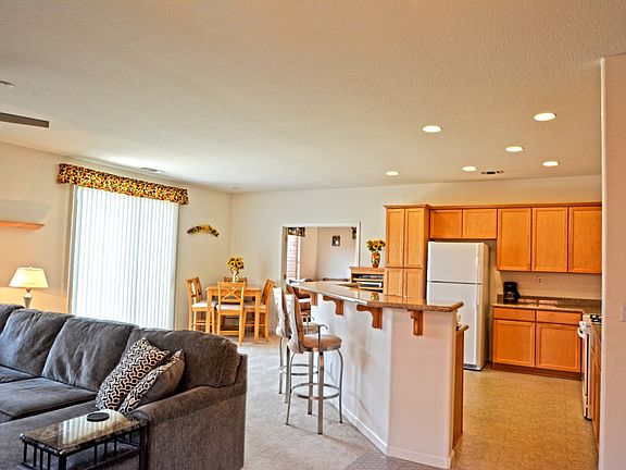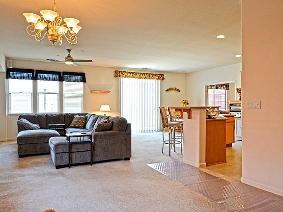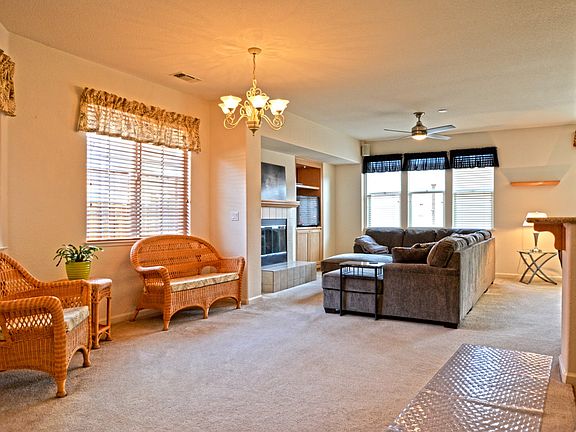 Open floor plan w/moderate upgrades throughout, dual pane windows, ceiling fans, carpet, linoleum & tile flooring. Gas tile surround fireplace in LR. Kitchen w/granite countertops. French doors that open to the FR. Private backyard w/patio. Finished garage w/epoxy floors & additional storage.