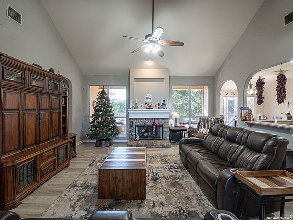Nestled in the heart of the Texas Hill Country, this beautiful 3-bedroom, 2.5-bathroom home offers a spacious, luxurious interior designed for comfort and style. With an ideal layout and modern touches throughout, this property is perfect for anyone looking to enjoy the serene charm of the country, while still being close to the conveniences of city life. The open layout living area with a cozy fireplace flows seamlessly into the modern kitchen, featuring stainless steel appliances, beautiful countertops, and white cabinetry. Enjoy morning coffee in the breakfast nook with wonderful backyard views. The private primary suite offers a large en suite bath and walk-in closet for a serene escape. An upstairs loft, perfect for a media or game room. Don't forget the heated and air-conditioned detached garage which is a great place for a project car or extra storage. The additional 8x12 storage shed with upper storage or the larger 12x16 heated and air-conditioned outbuilding are perfect spots for a man cave, she shed or fitness center. This move-in-ready home blends the tranquility of Hill Country living with the ease of local shopping, dining, and access to Bandera Road, Highway 1604, and Old Town Helotes. Enjoy a perfect balance of peaceful country vibes and modern amenities. This home is ready for you to make it your own. Schedule a tour today!