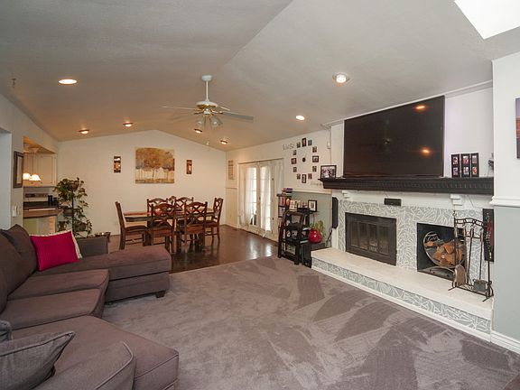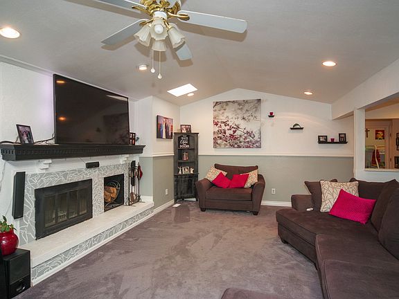 Large Ranch Home w/ Open Floor Plan. Great curb appeal! Landscaped w/ planters, perennials, split rails & an arched entry leading to a large covered front patio. Open Living Area features a beautiful wood-burning FP as a focal point, with intricate custom tile pattern and wood mantle. Kitchen features SS Appliances with Brand New Stove/Range/Oven, Microwave & Dishwasher. Three bedrooms on the main level. Master Bedroom with Master Bath with jetted tub and walk in closet. Additional 2 Bedrooms share full hall bath. Newer windows on Main Level. Finished basement boasts a large open family/recreational area with FP and a bonus flex area currently being used as a workout room. Basement also has 3/4 Bathroom and 2 additional rooms that may be used as non-conforming Bedrooms (no closets) or used as office/play rm/craft rm, etc. Backyard features covered patio w/ built-in sandbox, utility shed, landscaping & privacy bushes. NO HOA!