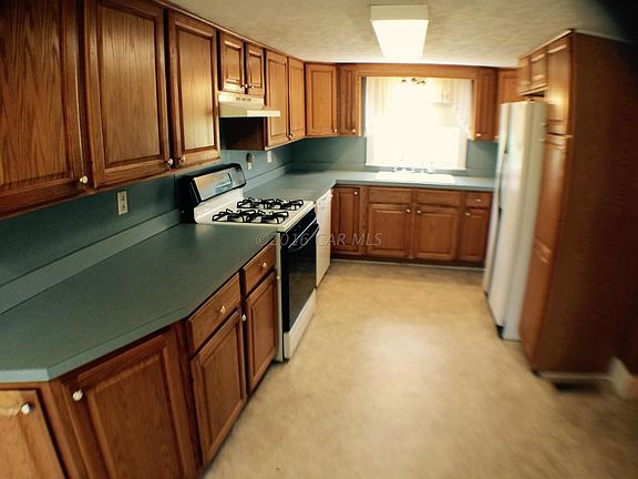 This farmhouse is bigger and prettier than expected. Three bedrooms upstairs, 1 bedroom downstairs along with a living room with gas fireplace, remodeled (90''s) kitchen, two bathrooms and a dining area too. The downstairs bedroom suite is handicapped accessible with nice closets and a outside door leading to your back yard. Lots of cabinets in the kitchen plus room for a kitchen set. Built in cabinet in dining area. No heat or air upstairs. Large floored attic . Detached garage with electric to it. Paved driveway. Almost an acre of land. Floors have gotten wavy as they have aged but home seems very solid. Make this old charmer your home!