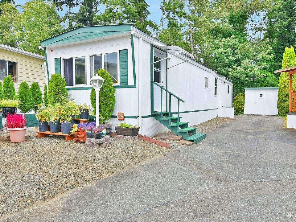 Comfortable & affordable living at it’s finest! Nestled up to a greenbelt in the coveted Carriage Club 55+ community you will find this move-in ready, clean & well cared for home just waiting for you to make it your own. Roomy kitchen boasts newer stainless steel refrigerator & stove/oven. All appliances stay - full size washer/dryer & even the portable air conditioner! Spacious living room awash in sunlight. Newer metal roof & new shed stocked with all the equipment you will need to care for your beautiful, low-maintenance yard. Most of the windows have been replaced. Low monthly dues include water, sewer & garbage. Easy access to Mukilteo with its great restaurants & ferry, shopping, Alderwood Mall, Costco, medical & bus routes.