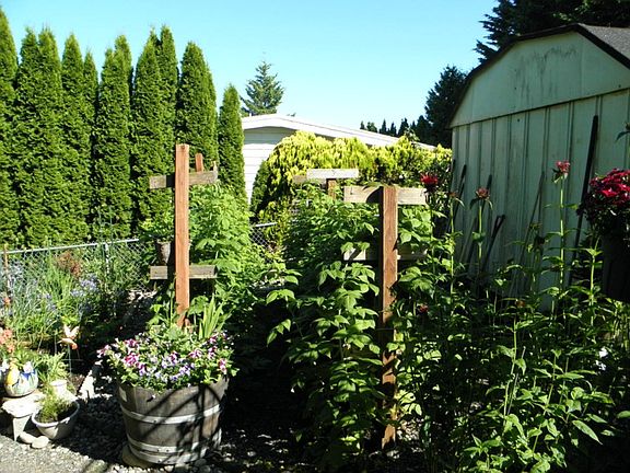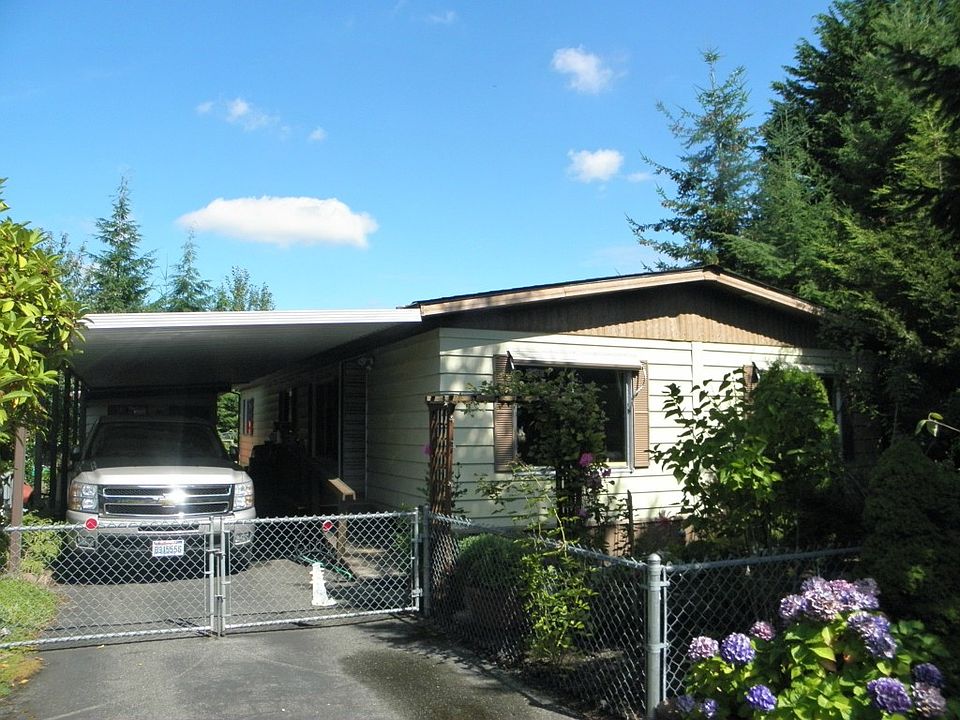 Fantastic Double Wide situated on Cul-de-sac and sited on the back of the lot to TOTAL PRIVACY. FULLY fenced yard, asphalt driveway, two car carport, LARGE 14 X 16 heated work shop/shed, and, 12 X 12 detached metal shed. Raspberry bushes, apple tree, large garden area, VERY LARGE Rhododendrons (30 years old and many colors), Flower garden etc. ALL upgraded appliances in Large ISLAND kitchen, opens to den area w/ sliding door to enclosed wood deck. Updated bathrooms. Kitchen appliances included.
