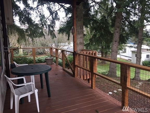Spacious well kept home in desirable Carriage Club Estates, 55+ park conveniently located close to freeway, ferries, shopping, beaches, Boeing & more. Make yourself at home: roomy living room, dining room w/ built ins, kitchen w/ pantry, good storage & all appliances stay. Utility room w/ washer(new) & dryer w/ has access to large wrap around deck. 3/4 bath off master.Wood working shop off back deck & a shed too. Enjoy entertaining on partially covered deck w/ the babbling creek in back.