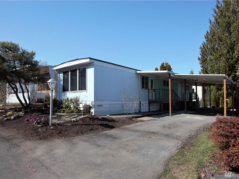 Remodeled home in Carriage Club Estates. Located close to Mukilteo and many amenities this park is very desirable. This home is move in ready. The kitchen has been completely remodeled with new cabinets, granite counters and stainless appliances. The bathroom has been completely remodeled, including new plumbing for the entire home. The new laminate floors give this home a desirable look and easy maintenance. New carpet in both bedrooms. Fresh easy maintenance landscaping and lots of parking.