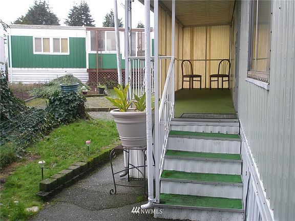 Price Drop!Check out this ready to go cutie in Carriage Club Est, a 55+ friendly park, minutes to Boeing! This well maintained 1967, 700 Sq. Ft. home has 2 good size bedrooms & 1 bath in hallway. Features incl new refer, new yard fencing, new paint in kitchen, roof freshly coated 3 months ago, big covered deck, large living space, garden area, & lots of storage! The Park laundry is west of unit. Close to Boeing, ferry, medical, shops, restaurants, & I-5. In-park RV parking. Smart living space!
