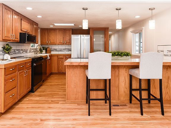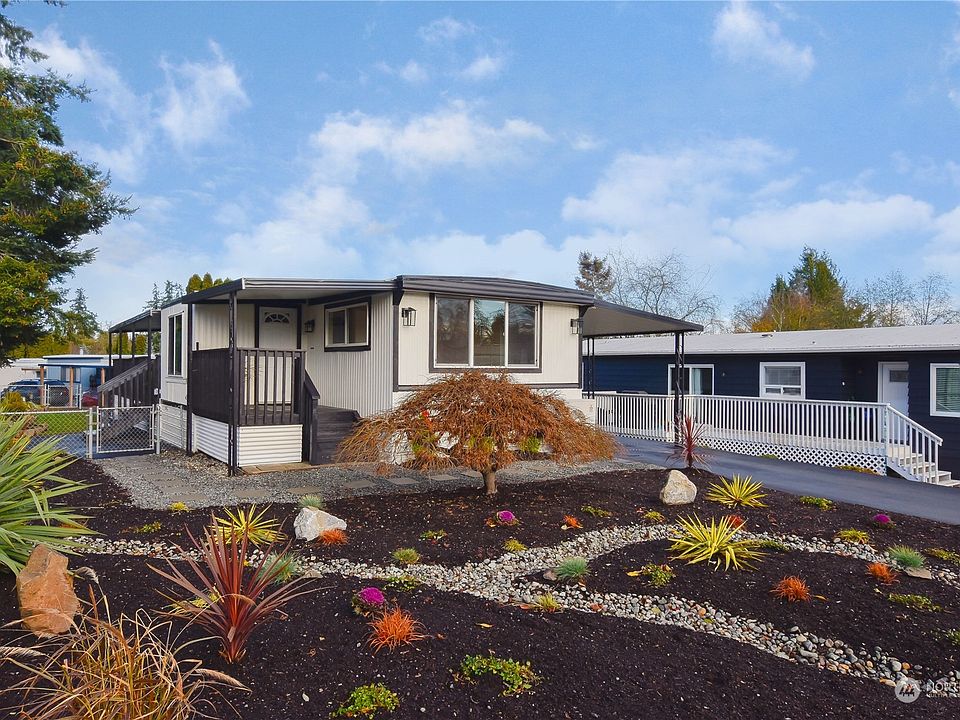 55+ park! This beautifully remodeled manufactured home offers a perfect blend of modern comfort & convenience. Featuring a spacious layout, it boasts a large updated kitchen with plenty of counter space, plus all new appliances. With 3 bedrooms & 2 bathrooms, this home provides ample space. The property is equipped with air conditioning to keep you comfortable year-round. Outside, off the 29 ft long covered porch you’ll find a dedicated fenced in space with grassy area, perfect for a pet and a low-maintenance yard. Washer + Dryer included. Decking under carport equipped w/ Wheel Chair Ramp. Carport space large enough for 3 cars. Move-in-ready gem, space rent at $659.00 per mo, includes water, sewer, & trash. Schedule your tour today!