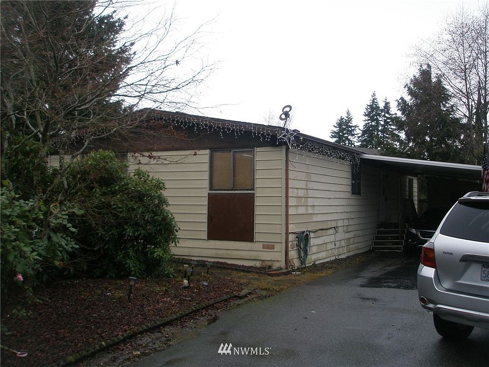 Tool belt time! Good bones, needs some fixes, but affordably priced accordingly. Featuring a 1978, 1332 Sq. Ft., 2 BR, 2 BA dbl wide home near Boeing, 55+! Great flow through floor plan w/separate dining room, family room, & living room areas! Huge kitchen pantry, plenty of counter space. Plumbing replaced in 2011, electrical updated in 2012, furnace replaced in 2011. Enjoy your coffee on your large, covered deck. Large lot waiting for your landscape touches. Mins to medical, shops, Ferry, Mall!