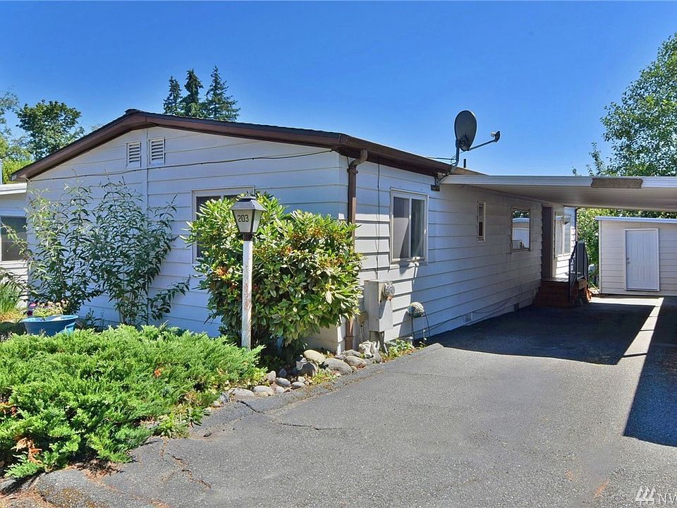 Finally, an affordable, well-maintained home that you can be proud of. Located in Carriage Club Estates 55+ Park & nestled down a quiet cul-de-sac, you will find this 2 bed, 2 full bath, 1,150 sq ft home. Boasting a bright & open floor plan, plenty of storage & extensive built-in features including a hutch in dining room & a desk/workspace in the family room. Recent updates: freshly painted interior, new roof, new furnace, new kitchen applcs, new kitchen & bath floors, new carpet thru-out, new porch & railing. Enjoy your coffee or dine al fresco on your cozy BBQ deck & stay cool w/exterior window awnings. Apple trees in backyard. Centrally located near freeways, shopping, restaurants, Alderwood Mall, Costco, Boeing, medical & bus.