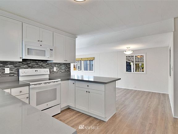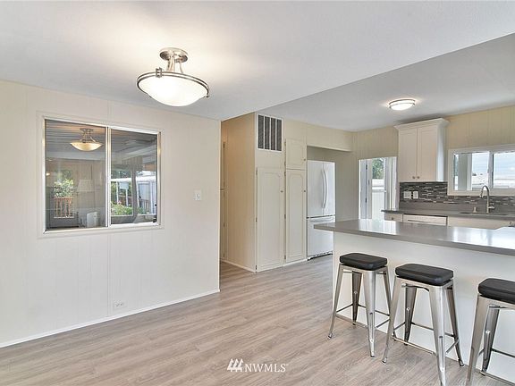 Totally updated, stunning home in the well-run, Carriage Club Estates, a 55+ community. An abundance of new, double-pane windows allows natural sunlight to drench the entire main living areas. New floors and freshly painted throughout. Inspiring brand-new kitchen is complete with all new cabinetry, stylish quartz counter tops and glass tile backsplash plus new or almost new appliances. Spacious, mud/laundry room conveniently located off kitchen; washer/dryer stay. Updated bathroom also features a gorgeous quartz countertop! Almost new water heater. Reasonable monthly dues include water/sewer/garbage. Centrally located, easy access to shopping, restaurants, Alderwood Mall (brand new Costco and Home Depot!), Boeing, medical and bus routes.