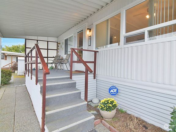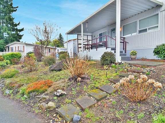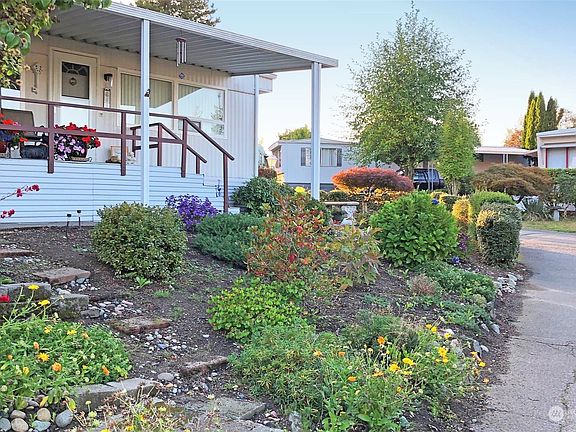 Don't wait on this lovingly, well-cared for home in the coveted 55+ Carriage Club Estates. Open floor plan with many special touches. Light, bright comfortable living. Relax on the front porch with your morning coffee enjoying a stunning mountain view. Home is clean, move-in ready. Lifetime recently sealed metal roof. Park rent includes water, sewer & garbage! Clubhouse, RV parking available, plus a fenced in dog play area. Only minutes to everything! Including bus lines, Mukilteo Speedway, I-5/I-405 access, Mukilteo & Mukilteo ferry, Alderwood Mall, shopping, dining, medical & Boeing
