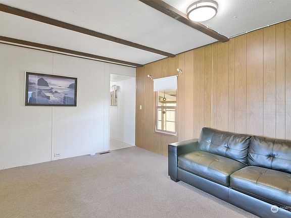 Don't wait on this are opportunity to buy instead of rent. Enjoy your own home with built in equity. Two bedrooms one bath low maintenance home in the coveted 55+ Carriage Club Estates located in South Everett/Mukilteo. Open floor plan, sunny efficient kitchen with cozy eating space/sitting area anchored by a wood-burning, free-standing fireplace. All appliances stay including new washer and dryer and refrigerator. Build equity while enjoying affordable comfortable living. Park rent includes water, sewer and garbage! Clubhouse, RV parking, dog play area. Close to bus lines, Mukilteo ferry, Alderwood Mall, shopping, dining, medical, I-5 and Boeing.