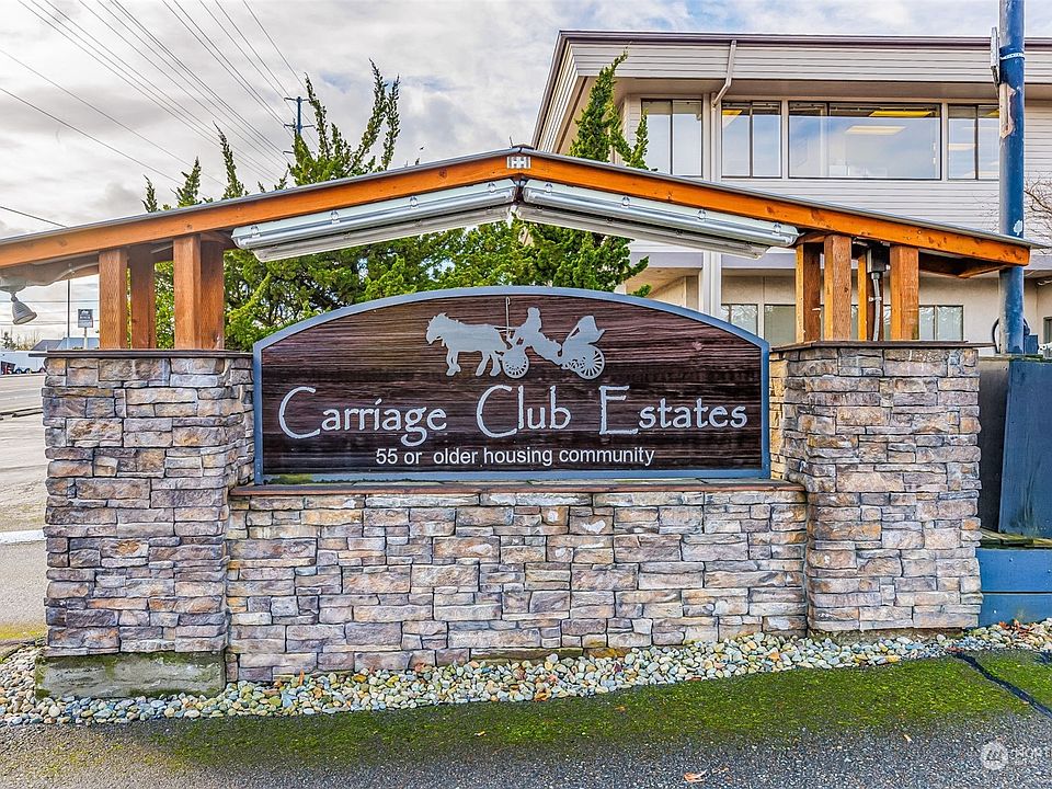 Welcome home to the wonderful Carriage Club Estates Mobil Home located in a friendly 55+ park, This is well-designed 2 Bedroom 1.75 with Sunny & Bright great room. Kitchen comes with all appliances-and washer/dryer in laundry room stay as well. Double pane windows. Large covered back porch for relaxing. Vacant/ ready to move in. Amenities glare-Minutes to Boeing, Medical, Mall Convenience stores, restaurants, and much more. Park approval required for purchase.