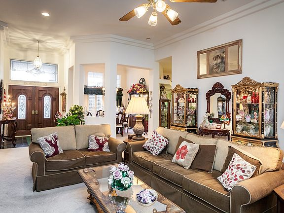 Custom Built Roberson home with Huge RV area and pool on (approx)half acre lot in very popular neighborhood in the Northwest on a cul -de sac. Seller is offering up to $10,000 allowance for new buyer to put in their own flooring and granite/ Quartz counters to update the home with their own vision. Exceptional split wing floor plan with lots of built ins, Trey ceilings, and decorative shelving throughout. Open concept plan from living room-Kitchen with endless views from all the windows to the beautiful mature landscaping, fountain, and pool. Double ovens, gas stove, island kitchen with lots of pull out drawers and pantry. Large covered patio & built in bbq. Spacious sun room with brick flooring. Plantation shutters, marble entry, and beautiful fireplace in the very large open living room. Den could be turned into the 4th bedroom. Master bathroom has vanity, dual sinks, jetted tub, two sided fireplace, 3 tier seasonal walk in closet and tons of attic storage space.