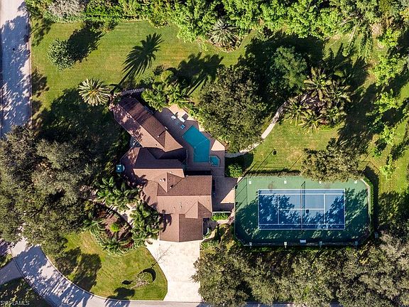 H96 - Custom-built, 2-story home, with 5,582 sqft of LA, updated in 2011. Vacation at this 1.8-acre estate with private tennis court, pool, hot tub & botanical garden grounds. Featuring 6BR, office, 4.5 BA, large circular drive to a 3-car garage. First level features 30' X 30' great room (with vaulted ceilings, wood burning fireplace & gleaming travertine marble floors throughout). French doors open to an oversized master bedroom which walks out to the pool deck, plenty of room for a sitting area or office. En-suite master bath with walk-in shower, separate tub, double sinks, walking closet. The gourmet kitchen has enlarged quartz island, double oven, gas stove top, over-sized pantry w/ storage galore, breakfast nook overlooking the pool & separate formal dining room. 2 additional bedrooms downstairs, one is used as second office and the other as guest suite or mother-in-law quarters with en-suite BA. Second level has a 25' X 20' family/game room with 3BR and 2BA. Additional features: electric car charger, central vac, generator hook up, security system, 4 a/c zones, tennis court redone 2017, new net & professional lighting. Floored above garage offers extra storage. Tennis Anyone