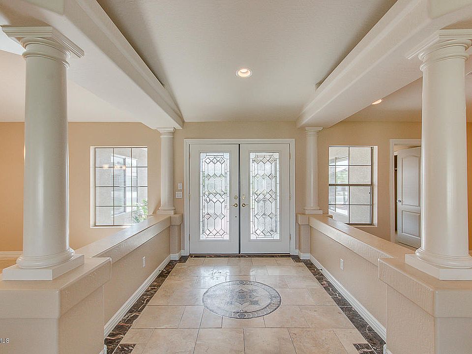 CLOSE TO EVERYTHING! SHOPPING, DINING, ENTERTAINMENT! This gorgeous 5 bed, 3.5 bath home is located in Litchfield Park in the Veranda subdivision. Property features a lavish interior, pillared accents, expansive living and dining areas, plantation shutters, staggered tile floors, and magnificent kitchen showcasing plenty of cabinets and counter space, stainless steel appliances including wall ovens, breakfast bar, pantry and eat-in area. The spacious master bedroom has private exit to yard, sitting room, and immaculate master bath boasting separate tub and shower, double sinks, and large walk-in closet. The spare bedrooms are nice sized and share pristine full baths. The backyard has space to accommodate a pool, has a storage shed, and grassy area for kids and pets to play in.