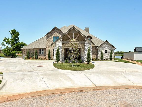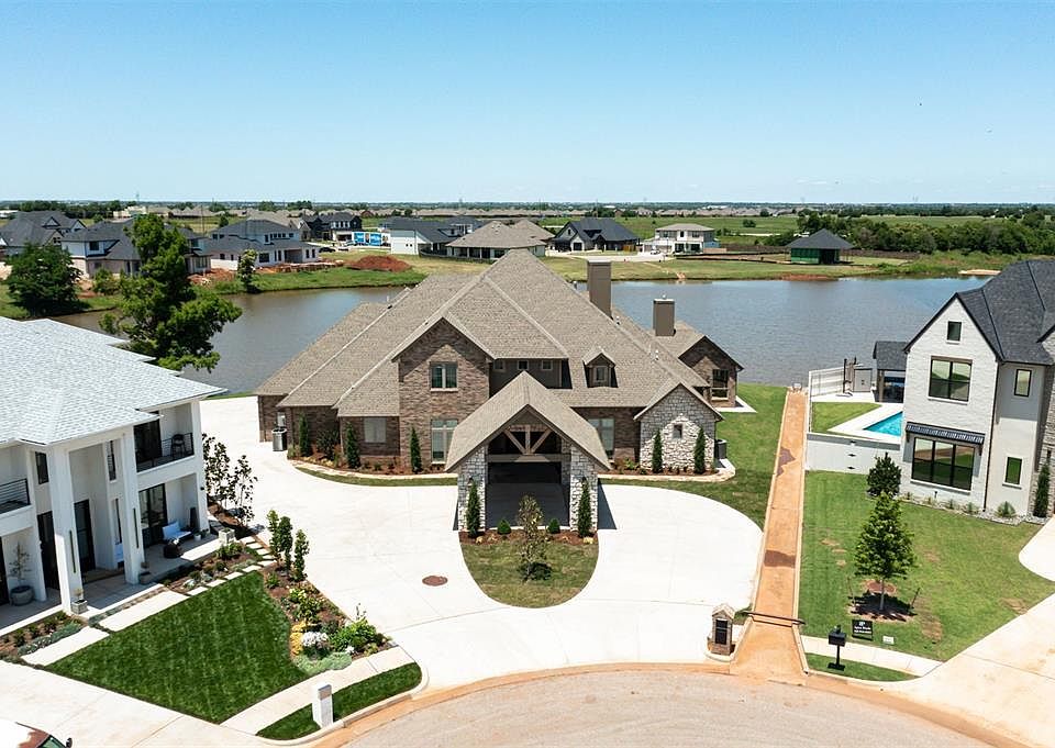Beautiful Brent Gibson design new home in a premier NW OKC gated community. Large kitchen island with Bosch dishwasher and double side by side ovens. Spacious living room with a spectacular lake view. Living room 4 panel sliding door opens to a power screened heated patio for year around comfort. Master bedroom has a double shower and large cedar lined his and her California closets.