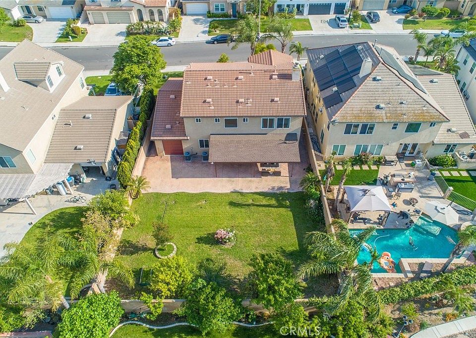 Welcome to this beautiful 4-bedroom, 4-bathroom, 4 car garage South facing home in Eastvale offers ample space for families and entertainment. The huge 9148 sqft lot size offers you the potentials of ADU and/or great size pool. As you enter, you'll find a spacious tiled lower level with a large living room and dining room. The downstairs area includes double doors leading to a 4th bedroom currently used as an office, but can easily be converted back to a bedroom. The open family room features a raised hearth and gas fireplace, with a covered patio outside that boasts ceiling fans and a peaceful grassy backyard, perfect for both family fun and relaxation. The kitchen is generously sized and showcases beautiful granite counters, overhead lighting, a kitchen island, and stainless steel appliances. Upstairs, you'll find a hallway with open bookcases and cabinets. The first bedroom on the right offers a walk-in closet and a private attached bathroom. There's also an open loft area, suitable for an office or a kids' space. The third bedroom features a ceiling fan and wood floors. The master bedroom includes a grand master bath with a double sink, a large separate tub, and a spacious shower. Additionally, there's an upstairs laundry room with ample counter space, a sink, and upper and lower cabinets for storage. The home provides a 3-car tandem garage with a pass-through door that opens to the backyard. A separate 4th garage is currently utilized as a storage area. Located in a great neighborhood, this home is conveniently close to elementary, middle, high school, shopping, and also access to everyday amenities. Don't miss the opportunity to make this property your new home.