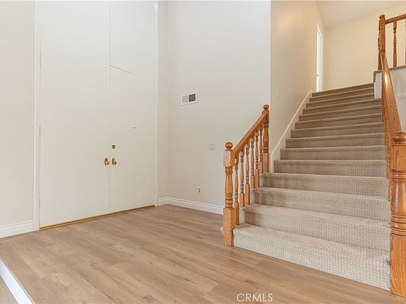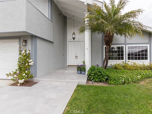 Amazing opportunity to own this 5 bedroom, 3 bath home in the highly sought after North Tustin area and located in a cul-de-sac in the lovely Meredith Ridge neighborhood. This 3-car garage home is light, bright, clean and a perfect canvas for future customization as desired. It has been freshly painted and brand new, upgraded flooring has been installed throughout the downstairs, as well as brand-new baseboards throughout the house. Entering the front door, take in the huge, open living room with beautiful vaulted ceilings. In addition, the large, roomy family room includes a cozy fireplace flanked by built-in cabinets and a wet bar. The large, eat-in kitchen has beautiful views of the expansive backyard and has plenty of room to add an island. An automatic, retractable shade awning is located above the exterior kitchen windows. Also conveniently located downstairs is a first-floor bedroom and adjacent bathroom with walk-in shower. The gorgeous staircase leads upstairs to 3 additional nicely-sized bedrooms plus the primary bedroom suite. The expansive primary bedroom includes a walk-in closet and bathroom with walk-in shower and double sinks. A large balcony to relax and enjoy the city lights and sunsets is also off the primary bedroom. The huge, flat pool-sized backyard includes a patio accessible by 3 sliding doors from the family room, dining room and kitchen. A large side yard could be used as a garden or ADU site and is only limited by your imagination. The calming landscaping includes 3 beautiful fruit trees. So many possibilities for this beautiful home and grand backyard. This home is conveniently located just a short distance from Foothill High School, Hewes Middle School and Arroyo Elementary. Access to Old Towne Tustin, the 55 freeway and shopping is also a short driving distance. No HOA or Mello Roos.
