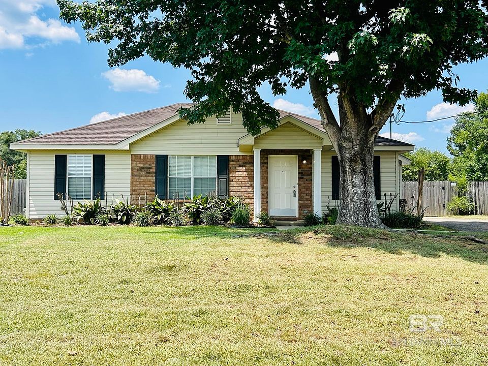 Very open floor plan with LVP flooring and tile, no carpet. Living room has a tray ceiling and brick fireplace with gas logs. Granite breakfast bar and kitchen counters. Crown molding in the tray ceiling and kitchen, and chair rail in the kitchen and bedroom. Bay window in the eat in kitchen overlooks the level privacy fenced back yard with storage building. The primary bedroom will accommodate king size furniture and has a walk-in closet. Roof was replaced approximately 5 years ago. Buyer to verify all information during due diligence.