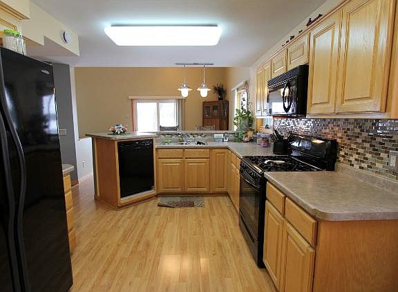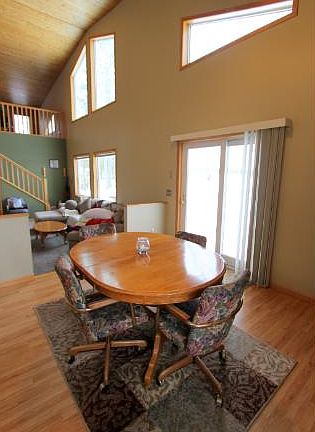 Beautiful Green Prairie Fish Lake home! Perfect elevation to lake just 50' away. Home has Thermotec windows, spray foam insulation and sits on a heated slab. Living room has 25' vaulted knotty pine ceilings, custom oak cabinets, 36" 6-panel oak doors. Maintenance free vinyl log siding. Spacious open floor plan. Loft overlooks living and dining room. Large master bedroom suit with Jacuzzi. Detached garage has steel roof with game room or more storage. Great fishing lake year round!