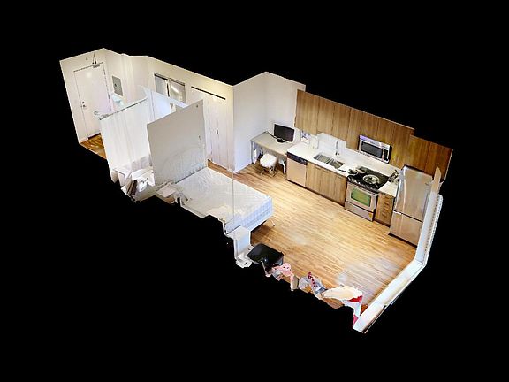 Floor-to-ceiling windowsStainless-steel appliancesQuartz countertopsIn-suite laundryLaminate flooringPrivate balcony