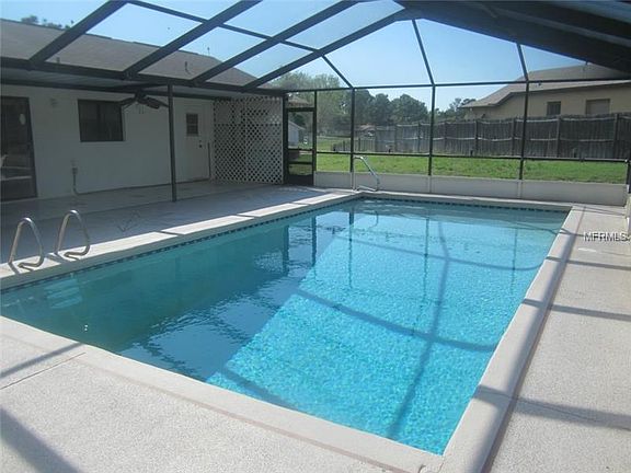 You will love the space and privacy of this home that sits on over 1/2 acre fenced with a separate detached one car garage and workshop! Caged pool home with oversized pool that is 10 feet deep on one end! 2 bedrooms, 2 baths, 2 car garage with a bath access to the pool area! Sliding doors off the master bedroom for a private access to the pool! All new Thermal Pane windows in the home! Home has been professionally cleaned and some interior painting that you could eat off the floor! Tiled throughout except for 2nd bedroom with brand new carpet! Great home for retirement or for 1st time home buyers!!