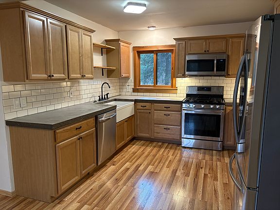 Cute Cabin on 2.5 acres just south of Cass Lake on Pike Bay Loop and the Migizi Bike Trail for rent. We love this little cabin which we put a lot of love Into while living here. It has a lot of character with cedar wood finishes and a large kitchen with concrete countertops. Life has pulled us in a different direction for a while so we are hoping to rent to the right person/family who will love it as much as we do! We are open to leasing for 12 months, month to month, or somewhere in between - we are flexible. It will be available after May 15. First months rent and $1,500 deposit due at move in. 2 Bedroom 1 full bathroom Washer and dryer Dishwasher Gas range stovetop oven Natural gas heat Optional AC window unit Large 1 stall garage Trash, electric, & heat included. Well water Water softener Pet friendly 2.5 acre lot with mature forest and open space to grow a garden & enjoy nature. The bike trail passes right by - hop on and you're at the edge of the water on Pike Bay in minutes. If you are interested please click the apply button through Zillow app ($35 fee). 1st months rent and $1,500 deposit due at move in. Electric utility bill covered up to $250/month. (Previous renters never went over $200. This is just to prevent excessive/abuse of electric). Pets: Up to 2 well behaved and house trained pets are welcome. $250 fee per pet. Lease does not include a small shed on the edge of the property that remains locked and is used for long term storage by owners.
