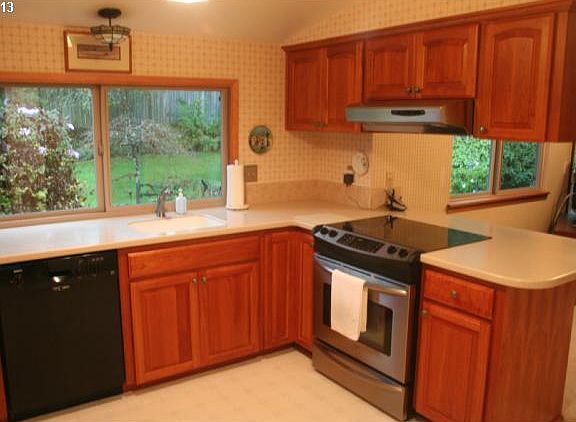 Pride of ownership- move in ready! 1-level ranch style on quiet low traffic street. High demand neighborhood and Beaverton schools. Private backyard with new stamped concrete patio. Light and bright! Vaulted living room with gas fireplace. Vaulted dining room with skylight. Nicely updated kitchen features large panty, eating bar, lots of storage, opens to family room and overlooks backyard. Vinyl windows. You won't be disappointed!