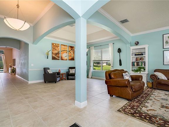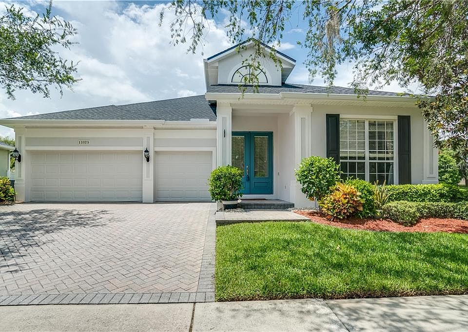 This 4 bed 3 bath home is a stunning gem in the desirable and tranquil neighborhood of Providence conveniently located near restaurants, shopping and Disney. With pavers composing the driveway and path you are instantly greeted by the stunning foyer with lofty ceilings and open to the spacious living and formal dining rooms. The freshly painted cool toned walls, soaring tray ceiling, and abundant natural light give the home an open, airy and spacious feel. Throughout the home are beautiful neutral tiles and stunning engineered hardwood floor. Beyond the huge family room the kitchen boasts tall warm wood cabinets, stainless steel appliances and commanding view of the family room and the pool beyond it. Outside is a stunning SALT pool, safely fenced with a rinsing shower outside and direct access to a full bath, all under a beautiful lanai and with a stunning water view. The Master bedroom with it's breathtaking heights, engineered hardwood floors and peaceful paint creates the perfect haven after a long day. A large walk in closet in the hallway guides us to the large Master bath with dual sinks, vanities, huge mirrors, jetted tub, spacious shower and private enclosed toilet. Following the elegant wainscoting found throughout the house there are two additional bedrooms with lots of light, plenty of storage, gorgeous floors! A brand new roof this year! With a three car garage, laundry room (with sink!) and additional full bath, this house ticks off all the boxes. Snatch this gem and make it yours today!