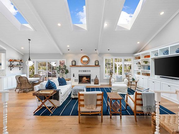 This “Better Homes and Gardens” inspired estate showcases timeless custom craftsmanship, set on a 1.56-acre lot with thoughtfully designed outdoor spaces that embody the best of California living. Light oak wood floors, vaulted shiplap ceilings and skylights throughout bathe the home in natural light, while detailed woodwork adds warmth and character. A formal dining room and a den sit on either side of the entry - with curated finishes that set the tone for the cohesive style carried throughout the approx. 3000 sq.ft. home. The chef’s kitchen features a butcher block island, marble countertops with full backsplash, built-in appliances with paneled refrigerator, dual ovens, and a wraparound coffee bar. It flows seamlessly into a spacious family room with built-in media center and gas fireplace - perfect for relaxing or entertaining. Step outside to your private oasis, where a sparkling pebble tech pool and spa are framed by mature landscaping and fruit trees. A Trex deck overlooks the expansive yard, complete with a built-in BBQ island, raised garden beds for farm to table living, a creekside picnic area, and a fenced dog run with a warm water hose to wash pets in comfort. The primary suite offers vaulted ceilings, custom woodwork, and a spa-like bath with herringbone tile, a walk-in shower, dual vanities, and a custom-built walk-in closet. Two additional bedrooms plus an office/bedroom offer flexible space for everyday living. Enhanced features include fully owned solar, pool solar system for energy efficiency, new Carrier A/C and heat pump, minimal HOA (just $50/year!), extra-long driveway with plenty of parking and a 3-car garage with upgraded flooring and built-in cabinets. Highly sought after Poway School District. Buyer and Buyer’s agent to verify all in MLS prior to COE.