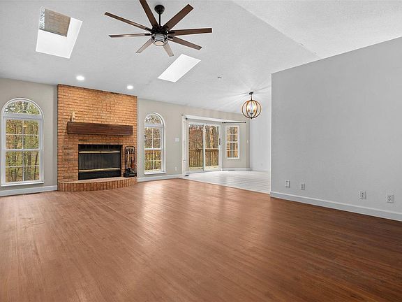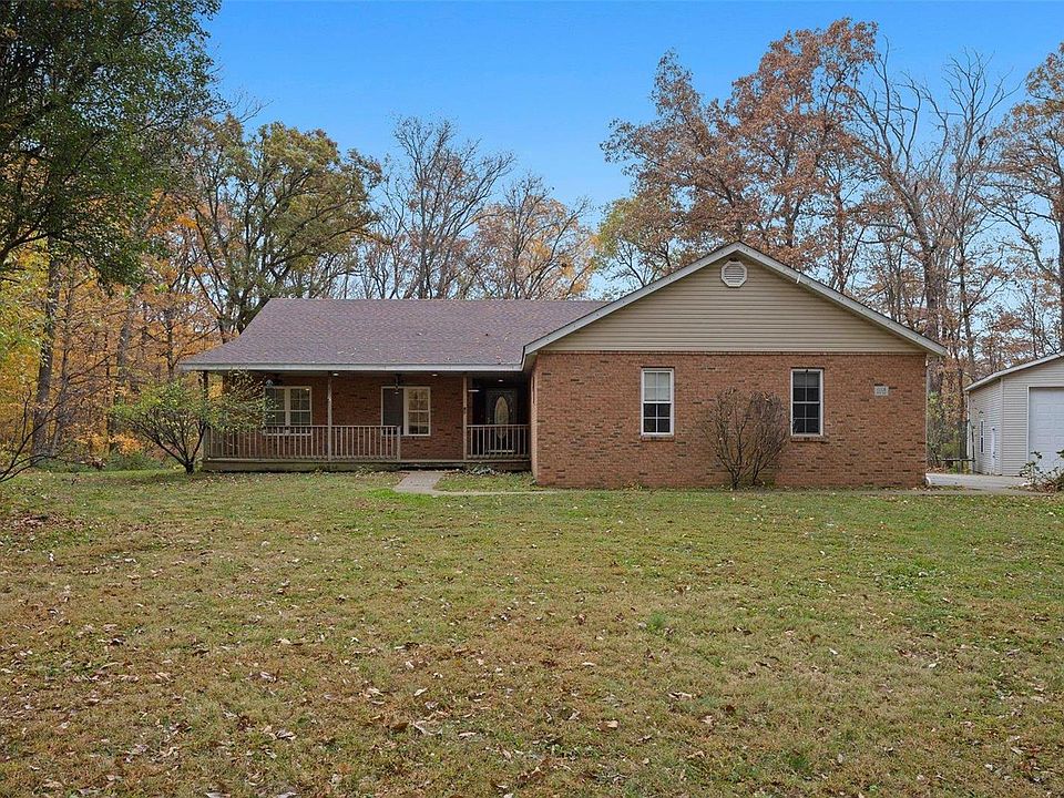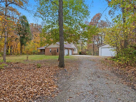 Welcome Home! Step inside this brick front ranch 4 bedroom 4 bath home on a serene 2 acres. Over 3000 sq ft of finished living space. The main level has tons of natural light, vaulted ceilings, sky lights and picturesque views off the large deck. Nice size kitchen with ample storage, stainless steel appliances and a walk in pantry. Over sized primary bedroom with an on suite. Large living area with a wood burning fireplace perfect for mid west winters. There are also 2 other bedrooms and 2 more baths to finish off the main. The finished lower level has a walkout basement, another bedroom and bathroom, large family area and plenty of storage. Beautiful wood bar and fireplace make the lower level perfect for entertaining. Detached 33x23 garage with 14ft ceiling and 12ft garage door. Brand new roof on house/detached garage, gutters, carpet and hot water tank all in 2024. Don't miss out on this one call your favorite realtor for a showing today. Buyer to independently verify all info.
