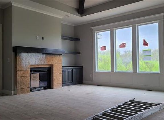 The Dalton by S&R Hawkins! Beautiful reverse 1.5 story on a walkout lot backing up to trees in The Estates of Timber Springs. Open great room with wood floors, fireplace, and full windows with a beautiful view. Kitchen and dining with wood floor, large island, quartz counter tops, gas cooktop, and walk-in pantry. Spacious master suite with a true walk-in shower. Walk-in closet with upper lifts connected to laundry room for your convenience. Great drop zone area with boot bench leading from garage. Stunning open tiered lower level with a full wet bar area overlooking walkout family room. Walk-in closets on both lower level bedrooms. Suspended garage for plenty of extra storage! Covered composite deck overlooking treed area. Sprinkler system, garage door openers, stucco front with stone trim, zero front door clearance, south facing home. All counters are granite or quartz. Finished pictures are of a separate model.