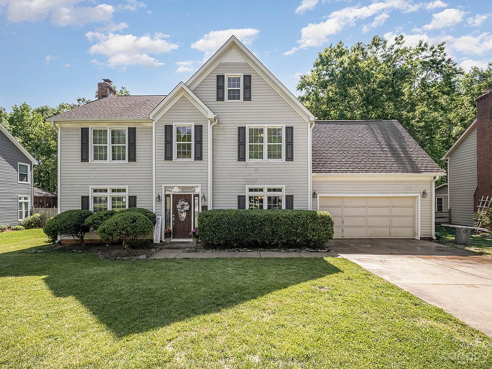 Traditional & stately 4 bedroom home tucked away in The Heathers community. Upon entering, you're greeted by your dedicated dining room to the right and your expansive living room/sunroom combination to the left, completed with a stunning brick fireplace. The sunroom features vaulted ceilings and leads you out to your large, level & fenced in backyard, including a large brick paver patio for summer evenings spent outside grilling! Back inside, your kitchen features SS appliances, endless countertop & cabinet storage and a breakfast area for more casual meals. Upstairs are all 4 bedrooms (4th currently being used as a playroom, but could be bed/office/theater/etc) including the primary retreat. With vaulted ceilings, endless natural light, a huge walk-in closet and en-suite with a stand-alone shower, soaking tub & dual vanities, what more could you want in your primary oasis? The secondary bedrooms are a good size & share a full bath. Bring your best offers & moving trucks!
