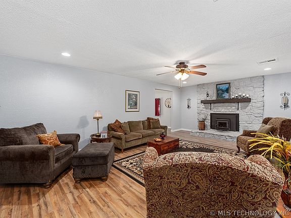 2 bed, 2 bath just up the road from Ft Gibson Lake, backs up to corp land. Updates include windows, lighting, flooring, paint, water heater, roof & partial fencing. Detached garage/shop is insulated, slab with electricity & overhead door. Oversize living room, kitchen and dining room with patio access. Place to park your boat, double gate to secure the yard, Blacktop road to property.