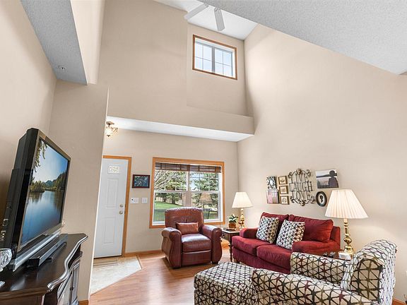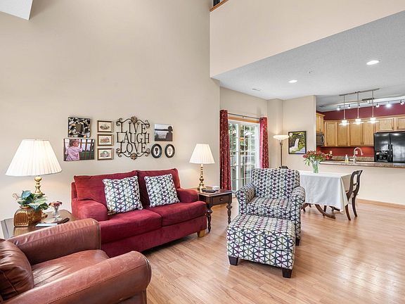 Back on the market only due to the financing falling through. Welcome to this stunning end-unit townhome that features two bedrooms and three bathrooms, with a generously sized primary bedroom that includes a walk-in closet and a private bathroom, providing a perfect retreat for relaxation and privacy. The main level boasts an open-concept layout with two-story ceilings in the living room, creating an expansive and inviting atmosphere. Natural light floods the space, enhancing the modern and airy feel. The inclusion of both side and front patios offers multiple outdoor areas for entertaining and personal enjoyment, extending the living space into the open air. An additional loft area provides flexible space that can be used as an office, a relaxation nook, or an entertainment area, adding to the home’s versatile layout. Located on a road that overlooks the stunning Minnesota River Valley, residents can enjoy spectacular views and multiple firework displays on the Fourth of July, making this home not just a living space but a unique experience.