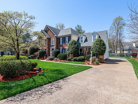 TAKE VIDEO TOUR HERE: https://iplayerhd.com/player/video/b06a1130-e846-41bf-9d85-cb2e9eb40779/share BUYERS' AGENTS WELCOME GORGEOUS 5-bedroom, 2.5 bath colonial brick front home, 1 mile from Short Pump Mall and other conveniences. Beautiful Hardings Trace neighborhood. Best schools in Metro Richmond. $35,000 in upgrades. Hardwood floors & 9 ft ceilings throughout main level. 2-story foyer w/large windows and tons of natural light. Formal living and dining rooms w/crown molding and chair rail. Spacious family room with fireplace and floor-to-ceiling windows -- flows into kitchen w/granite countertops, stainless steel appliances, large pantry, bar top & breakfast area. 2nd level features large master bedroom w/ hardwood floors and double doors, walk-in closet, and renovated bath w/skylight, tiled shower, jacuzzi tub, his/her vanities, private water closet. 3 more generously sized bedrooms and completely new full bath with tiled shower and floor. Huge 5th bedroom/office is perfect for working from home. Bonus space includes 2-car garage with built-ins ready to be used as game room for kids. Back yard includes like-new concrete basketball half-court, brick patio, large deck, storage shed. Manicured, spacious yard w/sprinkler system. Additional features include: low maintenance vinyl siding, new a/c (2018), $35,000 in upgrades. Top rated schools – Nuckols Farm Elementary, Pocahontas Middle School, Godwin High School. Minutes to Short Pump shops and restaurants, I-64 & 288. Immaculate home is sure to sell fast!! Will be shown by appointment only – April 23-25. Please submit all offers by Sunday 4/25 at 9 pm.