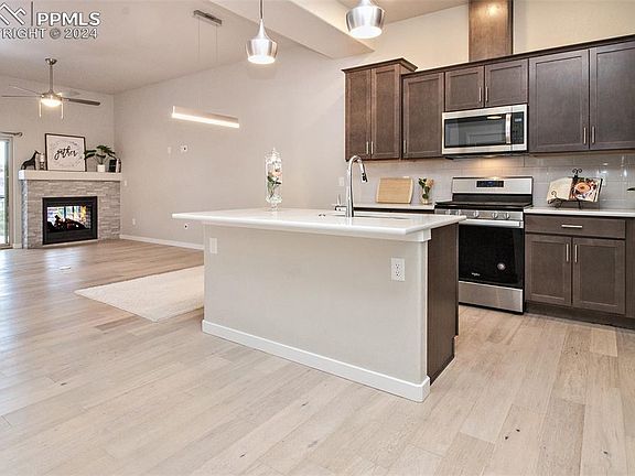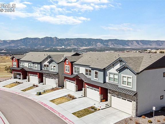 This is an upscale, two-story townhome in the prestigious Flying Horse Community. This 3,195-square-foot townhome was built in 2019, and includes tasteful finishes throughout, elevating the standard of modern living. With four bedrooms, four baths, and a two-car garage, this townhome is a great way to get into the Flying Horse neighborhood and the Academy #20 School District. The main level has a dramatic staircase, a powder room, and an immaculate, bright modern kitchen, and a primary bedroom with ensuite and walk in closet. The gourmet kitchen boasts top-of-the-line stainless steel appliances, sleek stone countertops, wood cabinetry, and a pantry, all creating a refined space for culinary creativity and entertaining. Step outside the living room to a private balcony with a see-through fireplace; this is a perfect spot for grilling or enjoying a little al fresco dining. The upper level consists of a spacious principal suite, complete with a generous walk-in closet and attached bathroom featuring a dual-sink vanity and a spa-like walk-in shower. Two additional bedrooms, a full bathroom, open secondary living room, and laundry space, complete the upper level providing luxurious accommodations for family members or guests. There is room for adding value with a 960 sq ft unfinished walkout basement that could add another bedroom, bathroom, family room, and storage space. Convenience is yet another perk to this townhome, located just minutes from the Flying Horse Clubhouse, Golf Club, and all the amenities the new Polaris Point area has to offer. This townhome is perfectly situated close to I-25, the Air Force Academy, Powers corridor, Restaurants, Top Golf, Hiking, Parks, Events, Entertainment, and Hospitals. This is a great opportunity, and a remarkable value, providing an opportunity for you to buy into the esteemed Flying Horse Community. Take a look and book a tour!