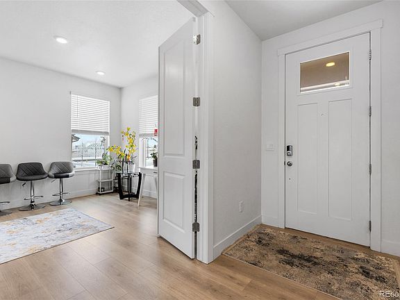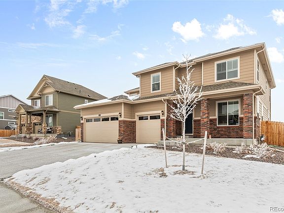 Welcome to this spacious and like-new home in the Timberleaf community, offering modern luxury, thoughtful upgrades, and the largest model available. With 6 bedrooms, 4 bathrooms, and over 4,600 square feet of living space, this home is designed for both comfort and convenience. The main level features an open floor plan with wider stairways and abundant natural light. The gourmet kitchen boasts custom cabinetry, quartz countertops, a large island, and a walk-in pantry, making it perfect for entertaining. Adjacent to the kitchen, the dining area offers beautiful backyard views, while the inviting living room centers around a cozy fireplace. A private office with French doors provides a quiet workspace, and a main-level guest bedroom and full bathroom add flexibility for visitors. Upstairs, the expansive primary suite is a true retreat with vaulted ceilings, a walk-in closet, and a luxurious 5-piece bath. Three additional bedrooms all feature generously sized closets and share a full bathroom with dual vanities. A spacious loft offers a second living area, playroom, or home office, and the laundry room is conveniently located near the bedrooms for added ease. The fully finished basement provides even more living space with a large rec room, an additional bedroom and a ¾ bathroom, along with ample storage. Outdoor living is just as impressive, with over $20,000 invested in backyard upgrades, including a beautifully landscaped yard, an expansive patio, and a fully fenced space for privacy and relaxation. The attached 3-car garage is finished and includes a newly installed EV charger. Located in a peaceful and scenic community, this home is within walking distance to local parks and walking trails, while also offering easy access to shopping, dining, and major highways for a seamless commute to Boulder and Denver.