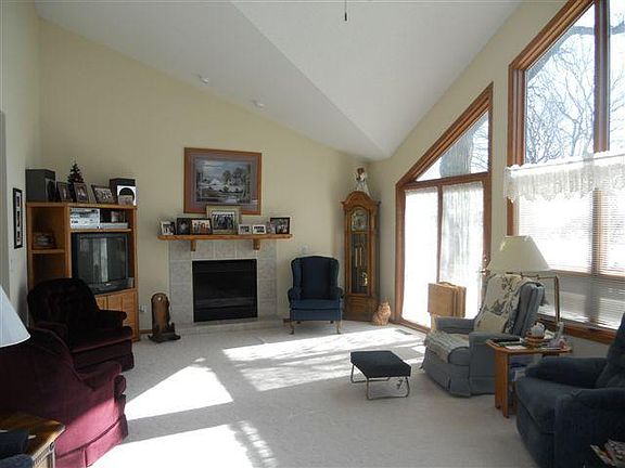 Very nice one level home built in 1998. Living room has vaulted ceiling, gas fireplace and patio door to new deck! Three bedrooms, 2.5 baths, heated finished garage. Nice lakefront with 80' on the water! Includes large back lot with 30 x 40 (partially heated) shed.