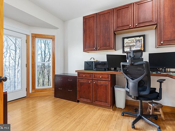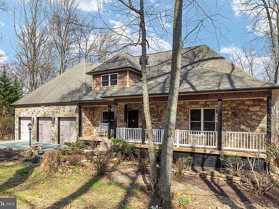 ***Reduced Price***Open House Sunday ** 12-2pm** Stunning Custom American Craftsman Style home on 7.85 acres off picturesque Mountain Road in Lovettsville. This beauty was built in 2008 by the one and only owner. The quality workmanship is evident and attractive features of this property are abundant. This home compliments its natural surroundings with its use of stone and wood inside and out. Upon entering the property on the recently redone driveway you will immediately see the distinct character of the home with full masonry along the front,a welcoming front porch, and a solid mahogany speakeasy front door. It has a fully insulated 3 car garage with cabinets, work bench, and man door. This home is move in ready with a slate floor entryway that leads to a cozy family room with stone fireplace and wood stove, 9 foot stone wall, tongue and groove cathedral ceilings, and faux cedar beams and rafters. The spacious primary suite is conveniently located on the first floor and is complete with walk-in closet, sitting area, and gas fireplace. The primary bath offers a corner jacuzzi tub, double headed shower, granite countertops, and brand new shower tile. Also on the first floor is a separate dining area with tray ceilings and uplighting. The gourmet chef style kitchen is a definite highlight of this home. It offers raised granite countertops, built in wine rack, level 5 Yorktown hickory cabinets, custom trim and an abundance of storage space. There is a spacious island with bar sink and new cooktop. Kitchen includes a double oven, microwave, refrigerator, and a new dishwasher. Off the kitchen is a door leading to the back deck made of trex/composite vinyl offering a scenic view of the back yard and plenty of natural lighting. This home features a home office off of the family room with level 5 wall and base cabinets, custom countertops, and a door to a potential private deck, and has french doors providing a quiet and private work space. Completing the main level is a powder room, laundry room with built-in cabinets and a utility sink as well as access to the garage through a true mudroom with custom benches and shoe storage. The upper level begins with a solid oak staircase complete with oak railings, metal balusters, and 6-inch fluted newel posts leading to 2 generously sized bedrooms. Brand new luxury vinyl plank flooring recently installed on the second floor. The upper level includes a secondary full bathroom with corian countertops and is accessible from one of the bedrooms and the hallway. There is also a great carpeted space that could be used for recreation, exercise , or playroom. This home has a nearly 2,000 square foot ready to finish walkout basement. It has been fully framed with a bedroom and walk-in closet, an oversized recreation room, small storage space with shelving, a large storage space/media room and lounge. It has a fully finished bathroom complete with tub and shower and corian countertops. This space is ready for you to make it your own with ceiling fan junction boxes, recessed lighting, and completed electrical work. Two exits from the basement take you outside. One with a set of french doors and the other with a man door that leads to a private deck area. Not only is this home structurally sound and appealing to the eye it has many extras in the way of upgraded utilities and mechanics. And last but not least this simply remarkable home offers a gorgeously landscaped yard, plenty of outdoor storage for equipment and firewood, and space for pets or farm animals including a livestock building, dog kennel, and chicken coop. There are 2 outdoor fire pits, a seasonal creek with ramps and morels on the banks, and an abundance of wildlife to view including deer, turkey, bear, and birds. No HOA! This home is close to schools, a new community center with a pool and athletic fields, gas stations, shops, local farms and farmers markets, wineries, and unique