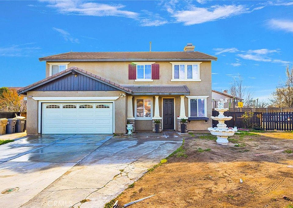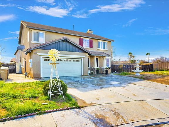 Two story house located on a cul-de-sac in Hesperia. Cedar Middle School is at a walking distance. Home is located just minutes away from shopping centers for a quick and easy errand run. This home is great for all the commuters out there since it is easy and quick access to the 15 freeway. Home has 5 bedrooms, 2.5 bathrooms. The main floor features a open floor plan with a modern kitchen, granite countertops and lots of space for storage, kitchen oversees family room with fireplace, a guest bedroom as well with its half bathroom. Primary bedroom is located on the second floor enjoy the spacious bedroom with sitting area comes with a separate his and hers walk in closets, restroom with a separate standing shower and bathtub, double sink with plenty counter space. Spacious loft with enough space to enjoy as a play area, office, etc. Fenced backyard with a large covered patio to enjoy those summer days.