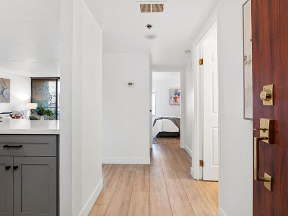 Remodeled condo offering views of Downtown San Diego and abundant natural light. The updated kitchen features smokey grey cabinetry with black accent hardware, quartz countertops, a honeycomb tile backsplash, dual-basin stainless steel sink, black range, and stainless steel dishwasher. The interior is enhanced with Core-Tech luxury vinyl plank flooring throughout, complemented by 5-inch baseboards for a clean, modern finish. The bathroom includes a newly refinished tub and shower enclosure. Large windows flood the home with light, and the unit is complete with convenient in-unit laundry. A turnkey opportunity in a prime urban location with style, comfort, and views. Location cannot be beat in highly desired Cortez Hill. Within walking distance to Balboa Park, East Village, Gas Lamp district and Little Italy. Amenities include secured parking, pool/spa, sauna, 2 workout rooms and a BBQ area. Easy and close access to all freeways.