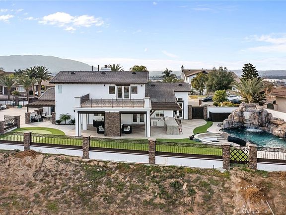 Welcome to this exquisite property nestled in the sought-after Norco Hills neighborhood. This captivating two story home boasts breathtaking views and has undergone a complete remodel, showcasing impeccable attention to detail and no expense spared! Set on a large cul-de-sac lot, this property spans over 30,000 square feet, offering ample space for relaxation and entertainment. Over $700k have been spent on the fantastic hardscape surrounding this home and interior upgrades. This impeccable property features a custom resort style backyard, complete with a custom pool and spa, slide, waterfall, mini golf, signature 20ft luxury outdoor barbeque island, sink, fridge, and multiple gathering areas. There is also a built-in TV entertainment wall in the patio area, as well as surround sound speakers in the ceiling to give an immersive cinematic experience. The palm trees further enhance the tropical oasis feel, creating a serene and tranquil atmosphere. Enter through the high-quality wrought iron double doors entry to a formal living room with soaring ceilings, abundant natural light and porcelain floors. The main level features two living rooms, formal dining room, and full bathroom. If you need a 4th bedroom, you can convert the extended living room into a bedroom. Upgrades include new porcelain floors, luxury vinyl planks flooring, carpets, 87 recess lights, and a new grand staircase. The kitchen was remodeled with custom cabinetry, porcelain countertops, a huge cascading porcelain island and the top-of-the line high-end stainless-steel appliances which include Wolf Range stove and commercial refrigerator. The kitchen is open to the family room which includes a custom fireplace and wine rack. Upstairs you will find three bedrooms and two baths. The master suite offers a large private balcony with unobstructed views, where you can enjoy the stunning view of the surrounding landscape. It also features an elegant and lavish master bath with quartz countertops featuring a soaking bathtub, walk in shower, dual sink with vanity and two walk-in closets. The two secondary bedrooms upstairs offer new carpets and a newly remodeled bathroom. The extensive grounds feature professional landscape and high-end artificial turf installed to reduce water and maintenance costs. Additionally, custom automatic exterior shutters provide both privacy and security. Don't miss this opportunity!