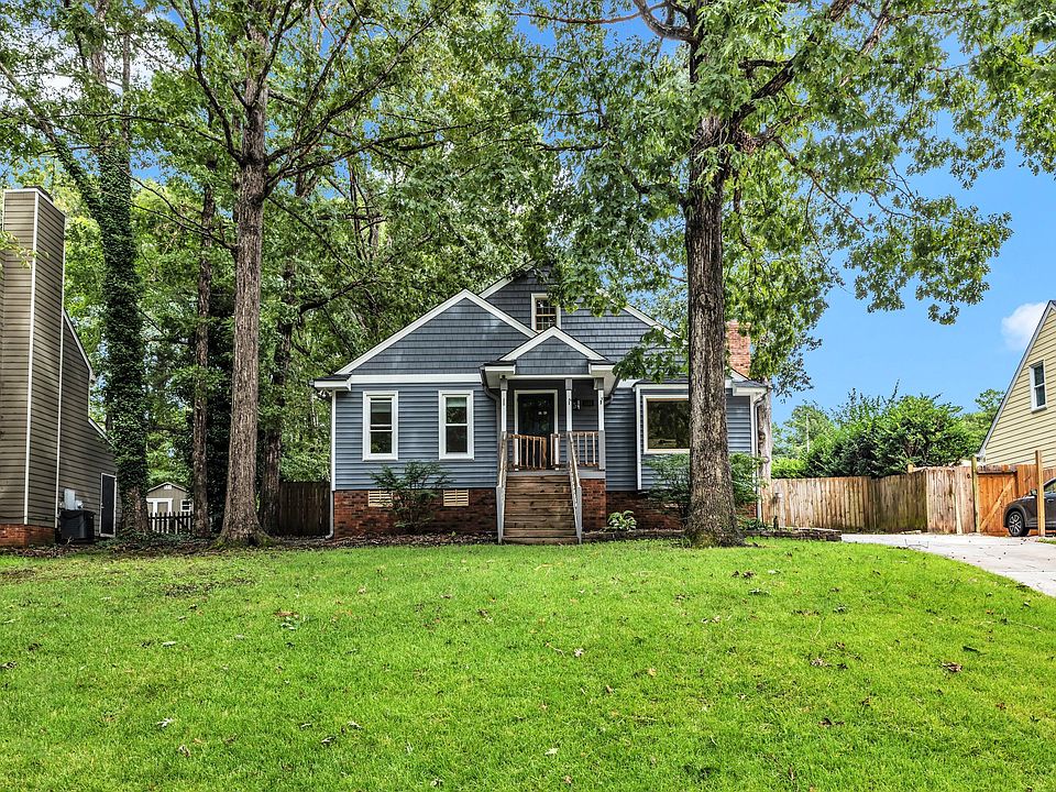 Great opportunity to improve this charming one level home! The spacious living area features a wall of built in's, vaulted ceiling, firepce, hardwood flooring and a large picture window bringing in tons of natural light. The kitchen was tastefully remodeled in the past along with the master bathroom. The home features three bedrooms on the first floor, two full bathroooms, and other heated and cooled space off of the covered porch. Step outside to the fenced backyard and shed for storage. Situated in a desirable neighborhood, this home is conveniently located near parks, shopping, dining, and top-rated schools, offering easy access to all that Wake Forest has to offer. It has a community pool, tennis court and playground
