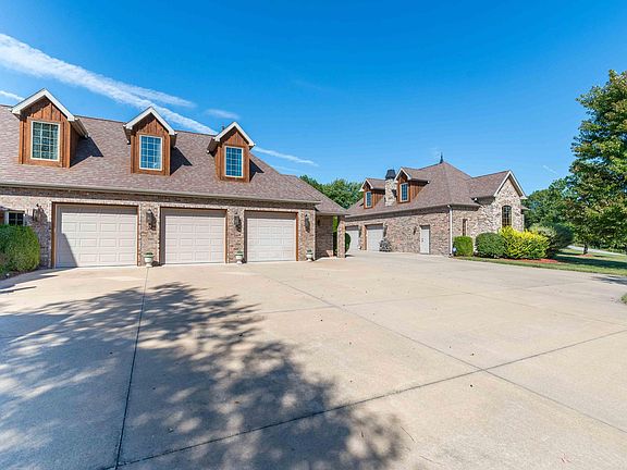 This beautiful home on three acres, with no covenants and restrictions, boasts a detached shop and a large salt water pool, sitting on a hill, right at the entrance of the exclusive Vintage Springs subdivision. Don't be fooled by the Rogersville address, your children would attend the highly sought after Ozark School District. Many added extras are a part of this custom built home, which was originally the builders own residence. As you walk up the steps to the main entrance, the beautiful solid wood door was handmade by the builder. Once you step through the door you will find a formal dining room with a formal living area with a gorgeous view of the countryside and pool out back. As you turn to the kitchen you will find a hearth room and a massive island. The beautiful back splash