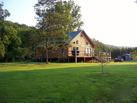 Absolute paradise! 66+ acres w/1500 sq ft, 2 bedroom, 1.5 bath log cabin. All wood interior with vaulted ceilings, hardwood floors, rock fireplace, open loft & wrap-around deck. Spacious great room encompasses the living area, dining area & kitchen. 2 bedrooms on main, large upstairs loft makes an ideal bunk room or additional living space. Large utility room provides laundry, storage & work space. Outdoors stocked pond, restored barn & storage building. Situated in cove surrounded by picturesque mountains, land bordered on 2 sides by year-round streams. Managed as wildlife habitat, deer & turkey abound. Easy access from Huntsville, Chattanooga & surrounding areas. Seller willing to divide