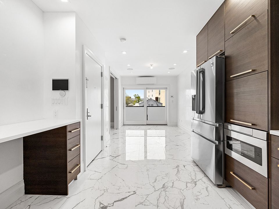 This beautifully designed, brand-new two-bedroom, two-bathroom home in the heart of Midwood combines modern luxury with functionality.Upon the entery you'll be greeted by abundant natural light, generous storage space, and a range of premium features. These include a pot filler, a Bosch dishwasher, heated floors, a full-size hybrid refrigerator, a built-in microwave, and an integrated speaker system throughout the home. Every detail has been carefully considered, with the developer sparing no expense in this exceptional new construction. Notable highlights include cutting-edge LED studio lighting, Nest wireless controls for the split heating and A/C systems, and stunning marble kitchens and baths. The kitchens are sleek and contemporary, featuring top-of-the-line appliances like a Samsung washer and dryer, LG Studio oven, Brizo faucets, and a hybrid refrigerator/freezer. The bathrooms offer a spa-like experience with glass mosaic floor tiles, Starphire Ultra-Clear Glass shower doors, Brizo full-temperature controlled showers, and premium Toto toilets. Additional perks include large, rust-resistant julliete balcony, heated floors, and a heated sidewalk in front of the building for added safety in the winter months. For peace of mind, the building is outfitted with advanced security systems. Outdoors, enjoy a spacious yard and a shared rooftop deck perfect for relaxing or hosting gatherings. There is also a storage room in the basement for added convenience. The location is unbeatable, just two blocks away from the B and Q trains at Avenue M, making commuting a breeze.