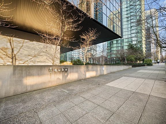 Modernist styled commercial building turned residential icon! CUBE - where loft lovers find their sanctuary, investors like their ROI & those who like it safe bask in the fact that Cube is Vancouver's most earthquake-resistant structure! Sought-after location - at the edge of CoalHarbour, West End & Business district. Steps to the "luxury lane" a.k.a. Alberni street, Stanley Park and Seawall. 9.6"ceilings gives the lift to the space & makes it feel much larger than its sq ft. High end finishings & Arch. Series appliances. 13' window wall, electronic blinds, California closets (with extra rod to maximize the height), concierge, visitor parking, lounge, bike storage, massive movable island, perfect for entertaining. Smaller closet can be utilized for designated work space. HAVE IT ALL!